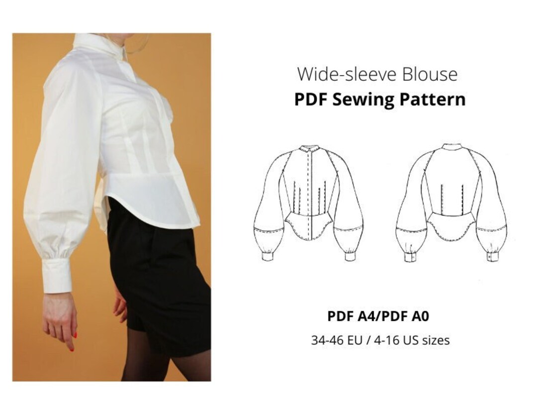 Wide Sleeve Blouse Pdf Sewing Pattern Instant Download Etsy